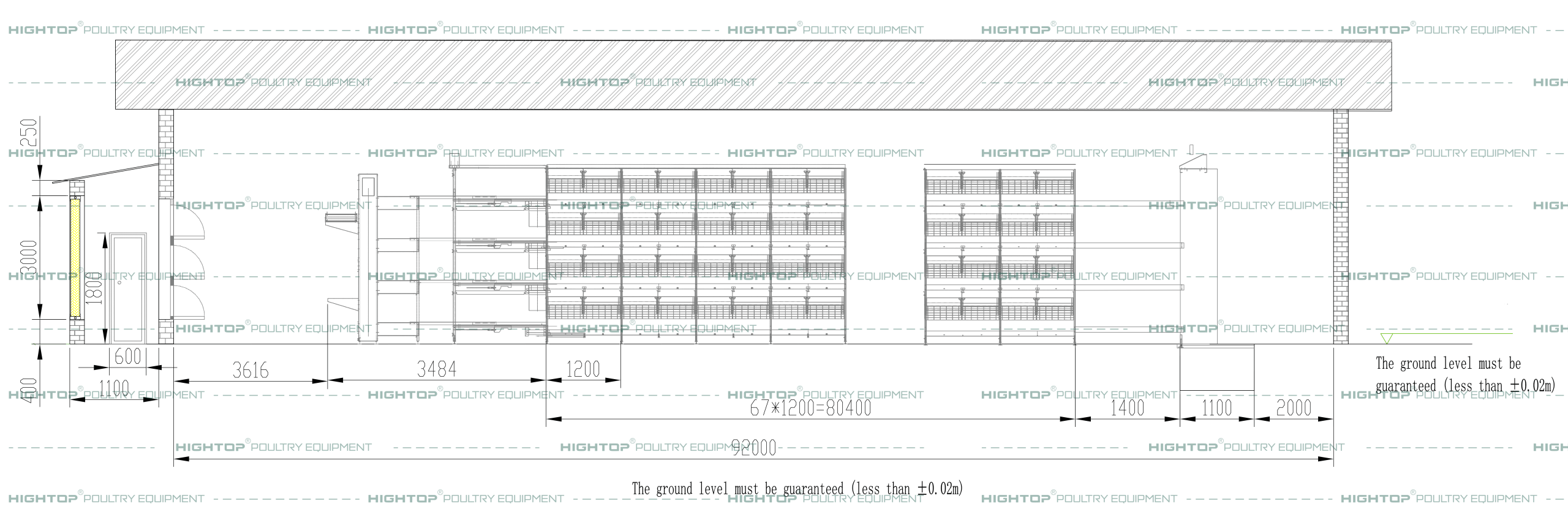 Una vez aprobado el proyecto, el cliente confió a HIGHTOP Poultry Equipment el suministro tanto del galpón avícola de estructura de acero como del sistema de jaulas automáticas tipo H con línea central de recolección de huevos.